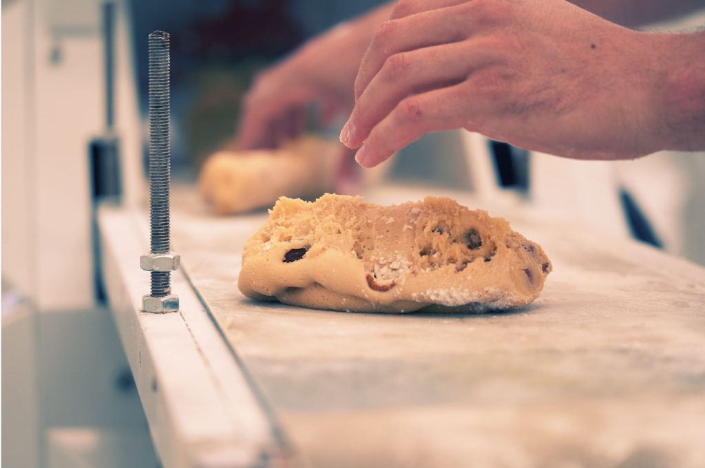 One of the most traditional recipes of the Tuscan cuisine inspires our biscuits: Cantucci. We add a little bit of genuine butter to obtain a softer and tasty result. We knead, prepare elongated strips of dough and then bake in the oven. When they are ready, we try them, share opinions and knead again. We have been having a great time experimenting in our laboratory in Quarrata.